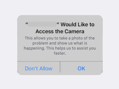 The text beneath Apple’s default message was changed to explain exactly why we needed permission – “This allows you to take a photo of the problem and show us what is happening. This helps us to assist you faster.”