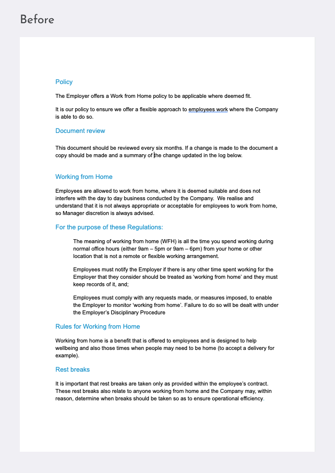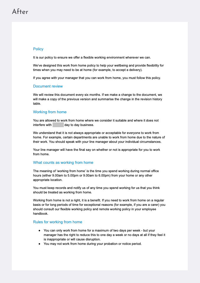 The existing policy was riddled with jargon, was repetitive, filled with random capitalisation, and didn’t read well.